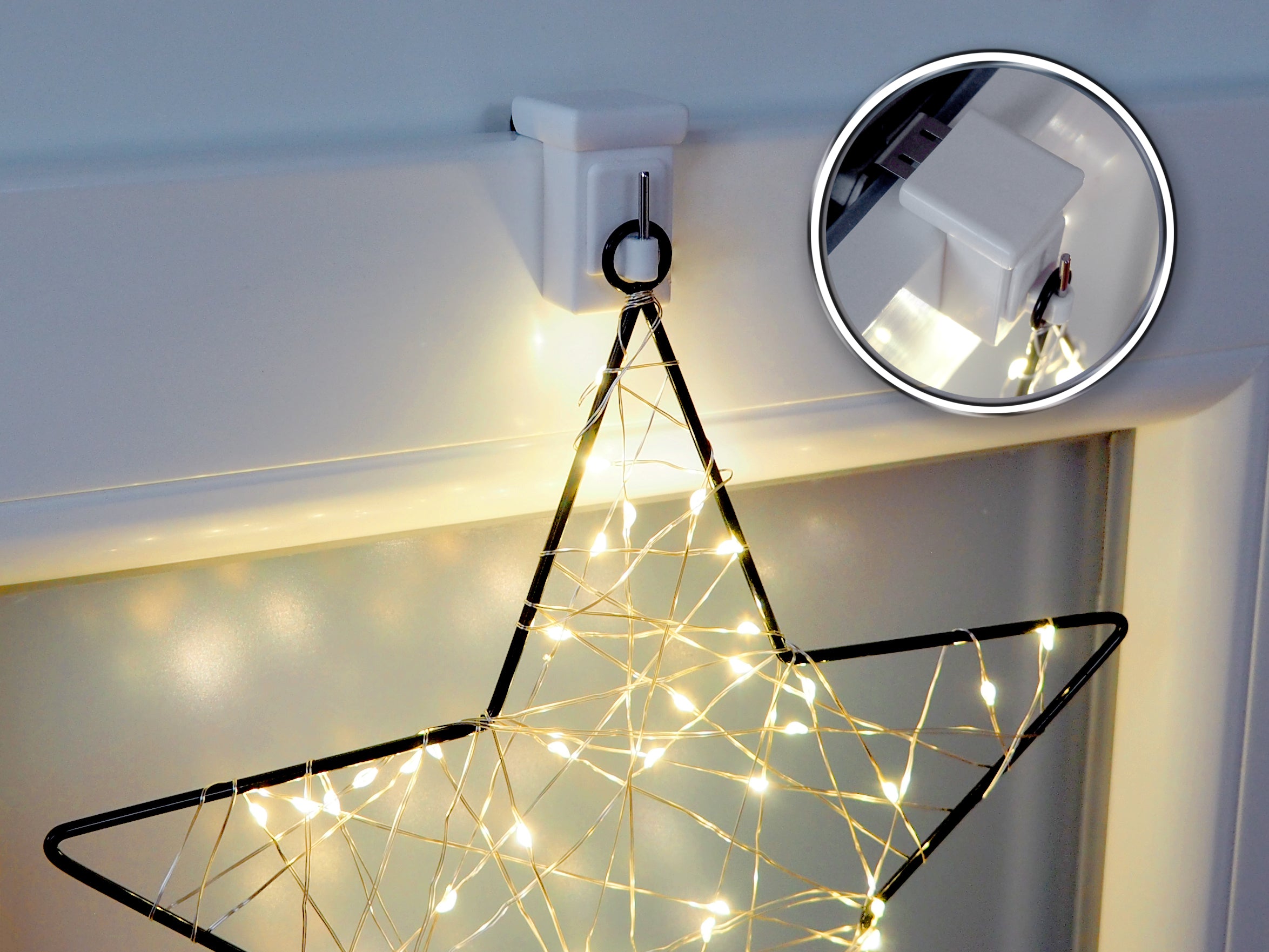 Perfekt für die Weihnachtszeit. Einfaches Aufhängen von Weihnachtssternen, leichten Kränzen, Kugeln oder Fensterbildern. Werden mehrere Haken an einem Fenster befestigt/geklemmt, bieten diese optimalen Halt für Lichterketten oder Lichtervorhänge.