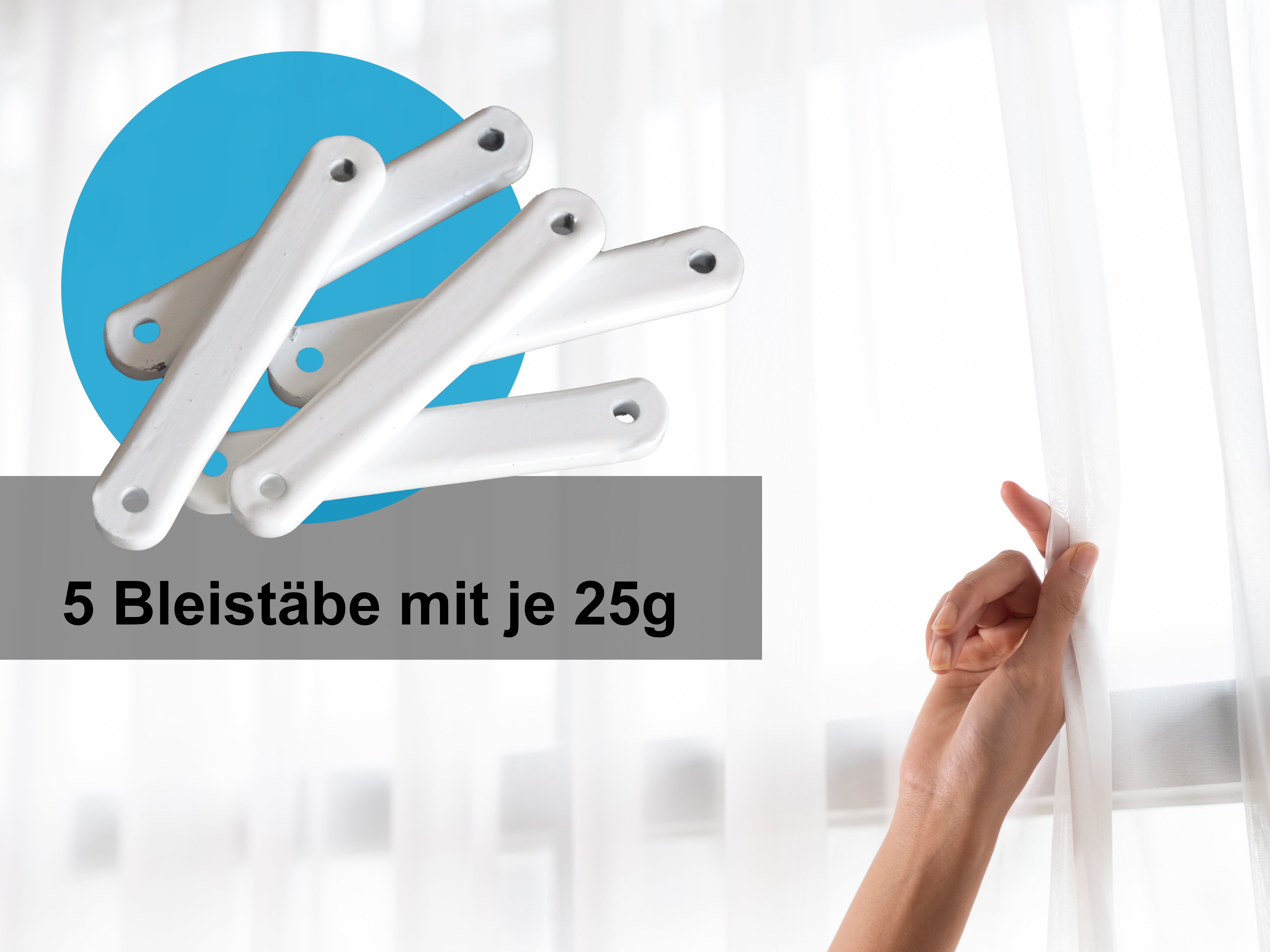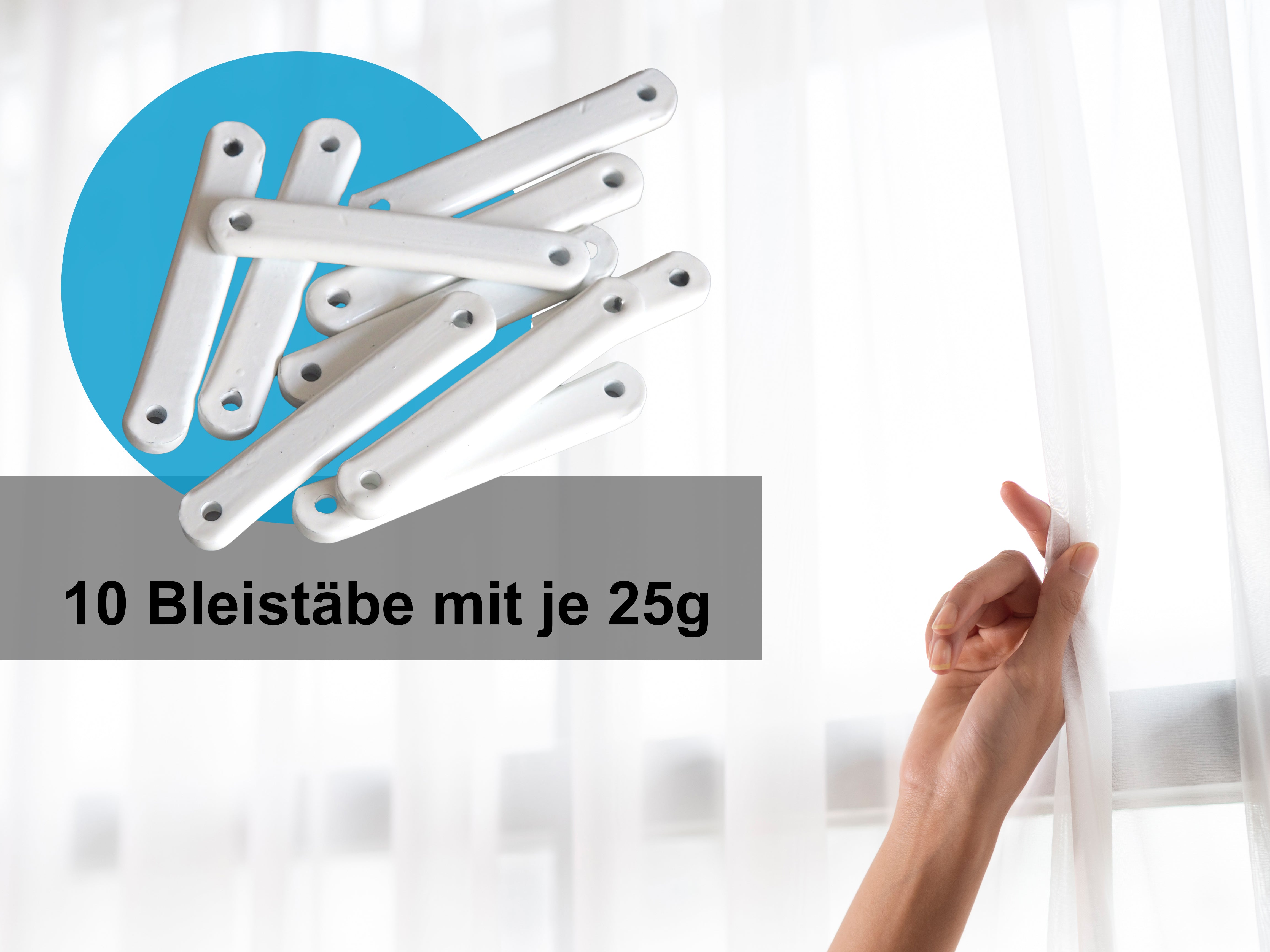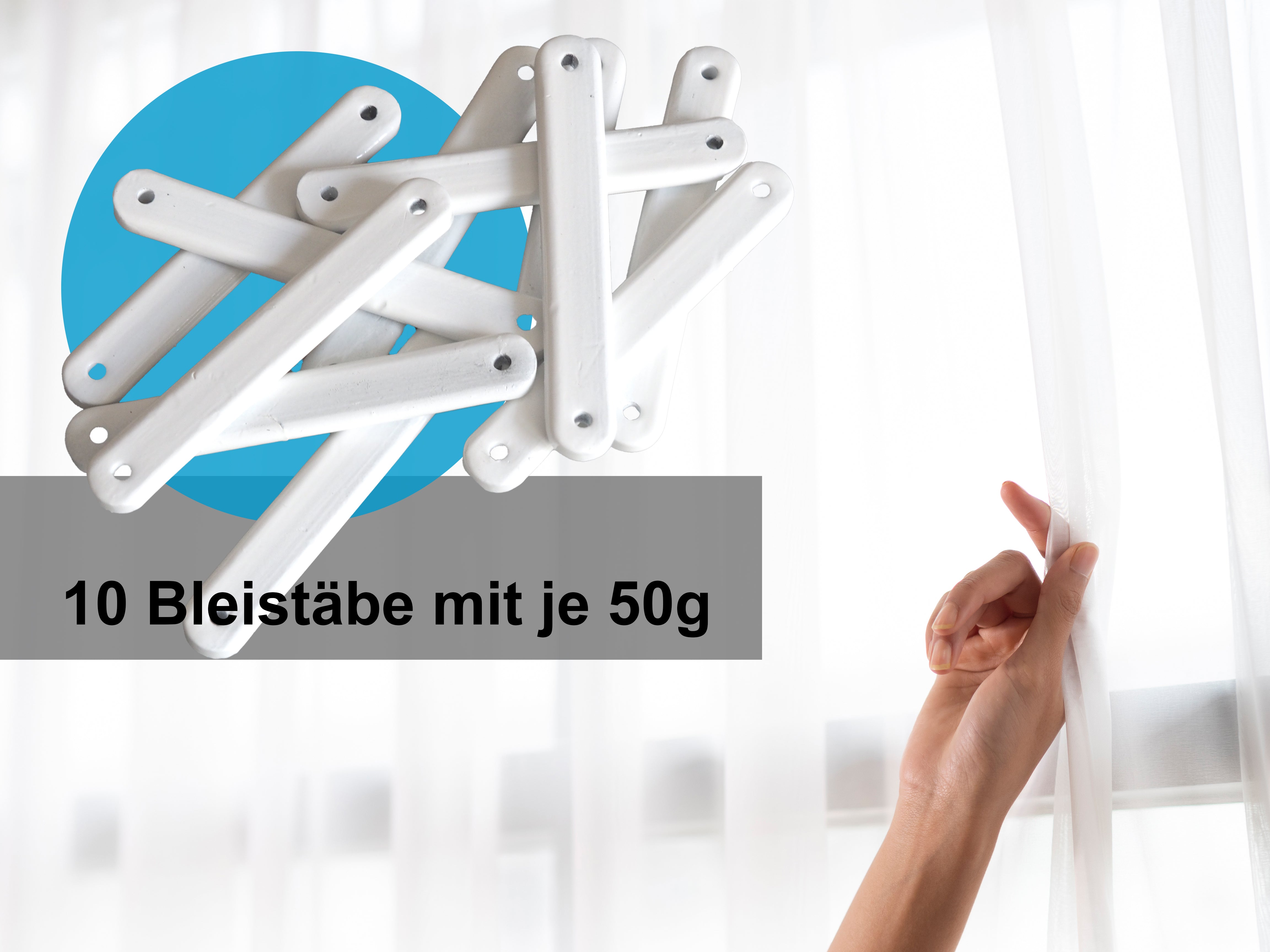 - Die Bleistäbe werden meist in den unteren Abschluss einer Gardine oder des Vorhangs eingearbeitet. Die Bleistäbe können entweder eingenäht oder eingelegt werden.