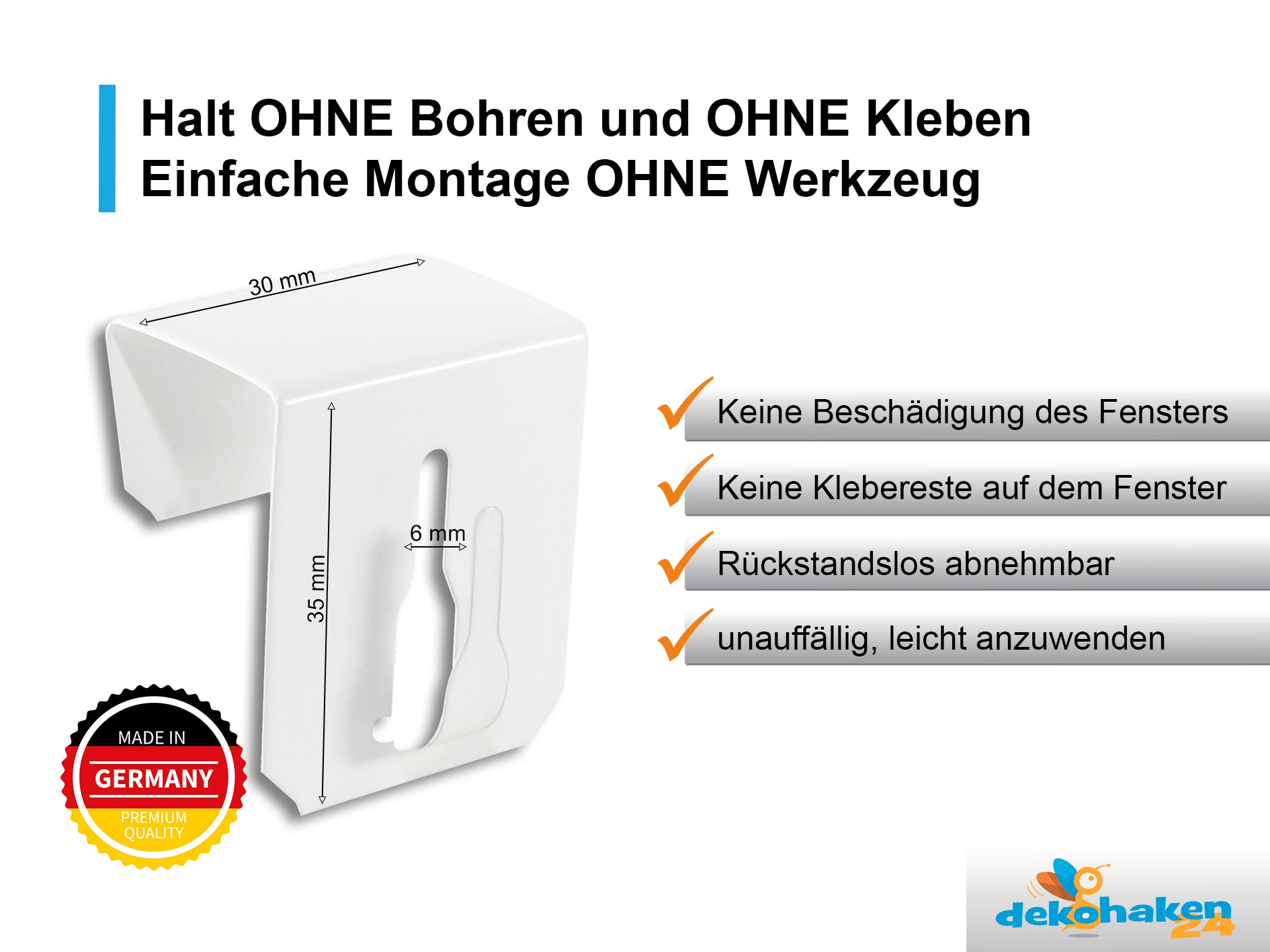 - Keine Beschädigung Ihres Fensters! Keine Klebereste auf Ihrem Fenster durch abgefallene Klebehaken! Kein Ärger mehr durch abfallende Klebehaken! Immer wieder abnehmbar!
