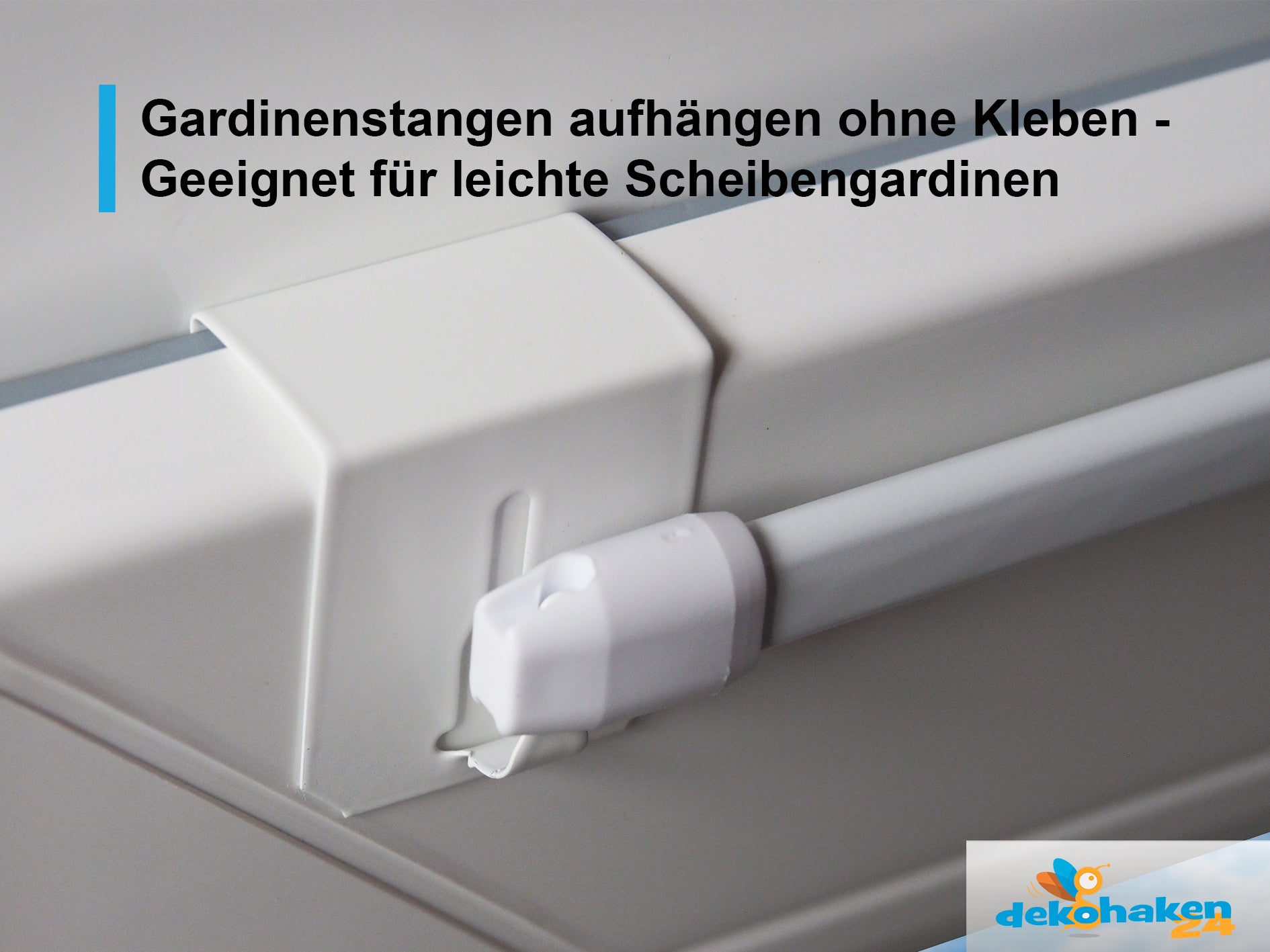 - Auch Gardinenstangen/Vitragestangen lassen sich mit dem Fensterhaken "oben" an Ihrem Fenster befestigen. Dazu wird die Gardinenstange einfach in den Sitft/Dorn des Hakens gesteckt ✔.